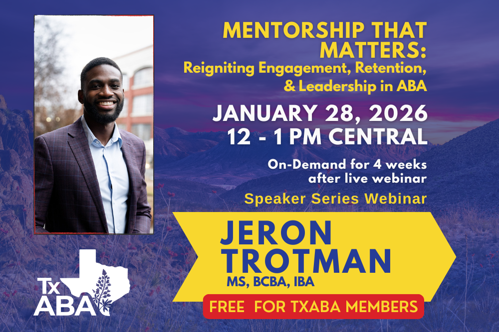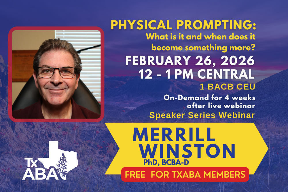TxABA is proud to be an Affiliated Chapter of the Association for Behavior Analysis International (ABAI) and an Affiliate of the Association of Professional Behavior Analysts (APBA). We are also an ACE Provide for the Behavior Analysis Certification Board (BACB).